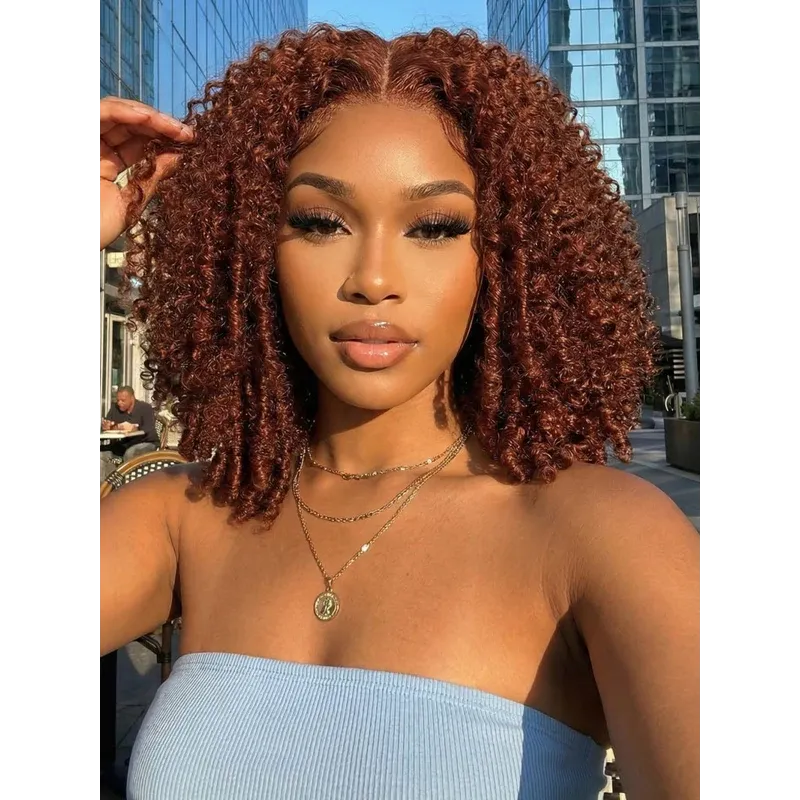 Reddish Brown Jerry Curly 7x5 Bye Bye Knots Human Hair Wig Put On and Go Glueless Lace Wig