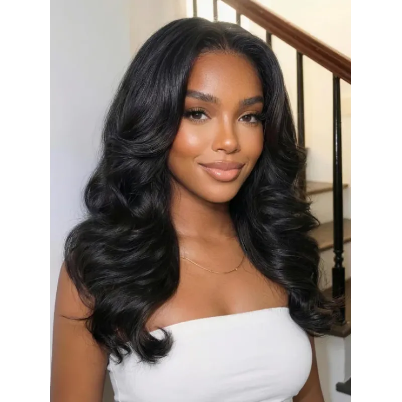 No Slip Glueless Lace Bmbshell Blowout Loose Wave Layered Wig Face-framing Feathered Layers Human Hair 200% Density